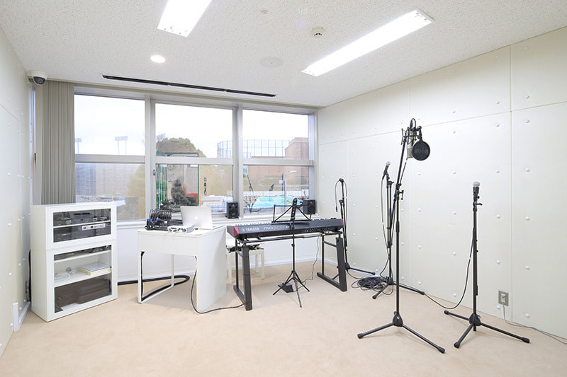 ボイスレッスンを行うボイストレーニング室では、録音した音源をお持ち帰り頂ける機能を搭載した最新の設備を整えております